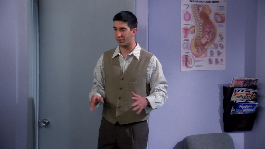 Кэрол, бывшая жена Росса, внезапно появляется у него на работе, чтобы сказать ему, что она беременна от него. Тем временем Моника в панике, так как её родители придут сегодня вечером поужинать, и она не хочет, чтобы они к ней придирались. В это время Рэйчел осознает, что потеряла обручальное кольцо Барри. Она и друзья начинают в панике искать его, так как вечером она встречается Барри, чтобы вернуть ему это кольцо. Рэйчел вспоминает, что могла обронить кольцо в лазанью. Моника расстроена, поскольку это была единственная работа, которую она доверила Рэйчел, и теперь обед для её родителей испорчен. Росс приходит и рассказывает всем, что Кэррол беременна, а Фиби находит обручальное кольцо в лазанье. Росс говорит, что Кэррол и её партнёрша Сьюзен хотят, чтобы он участвовал в воспитании, но только если он сам этого захочет. Кэррол и Сьюзен пригласили его завтра на свою первую сонограмму, а он понятия не имеет, что он собирается делать: он все ещё обдумывает тот факт, что он станет отцом, и не знает как можно воспитывать ребёнка с двумя лесбиянками. Во время ужина с родителями Моника подвергается очередной атаке критики от своей матери. Моника решает перевести внимание на проблемы Росса. В конце концов он рассказывает, что у Кэррол будет ребёнок. В Центральной кофейне Рэйчел и Росс говорят о Барри и Кэррол, и Рейчел просит совета у Росса как не расстроить Барри, а позже спрашивает «когда жизнь стала такой сложной?». Росс мечтательно смотрит на Рэйчел. Позже Росс идет в клинику, чтобы увидеться с Кэррол, а Рейчел идет к Барри, что бы отдать ему кольцо. Росс обсуждает с Кэрол и Сьюзан имя малыша и в ужасе узнает, что его ребёнок не будет носить его фамилию. Росс понимает, что он не готов участвовать во всем этом и пытается уйти, но когда появляется сонограмма с малышом, все трое счастливы. Вернувшись в стоматологический кабинет Барри, Рэйчел узнает, что Барри отправился в их медовый месяц на Арубу с Минди, лучшей подругой Рэйчел. Рейчел расстроена. В квартире Моники и Рэйчел собрались все друзья. Росс приносит копию сонограммы, и вся банда её рассматривает. Рейчел разговаривает по телефону с Минди. Она заканчивает разговор, тем, что желает им детей с волосами Барри и настоящим носом Минди.