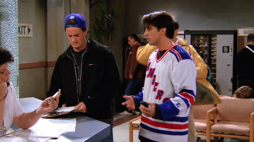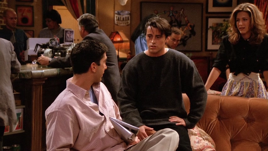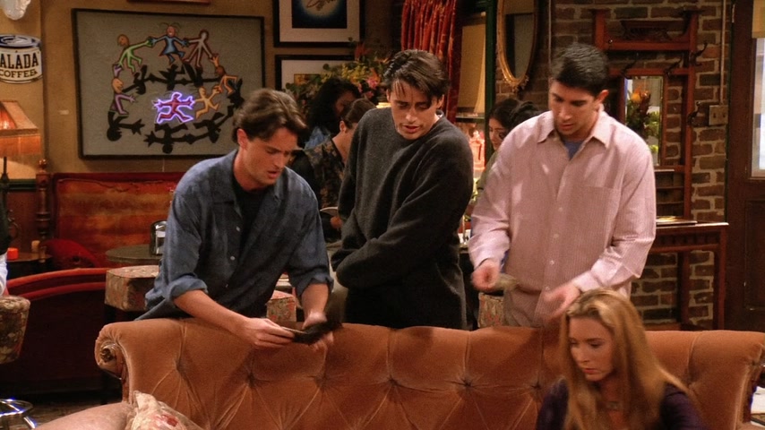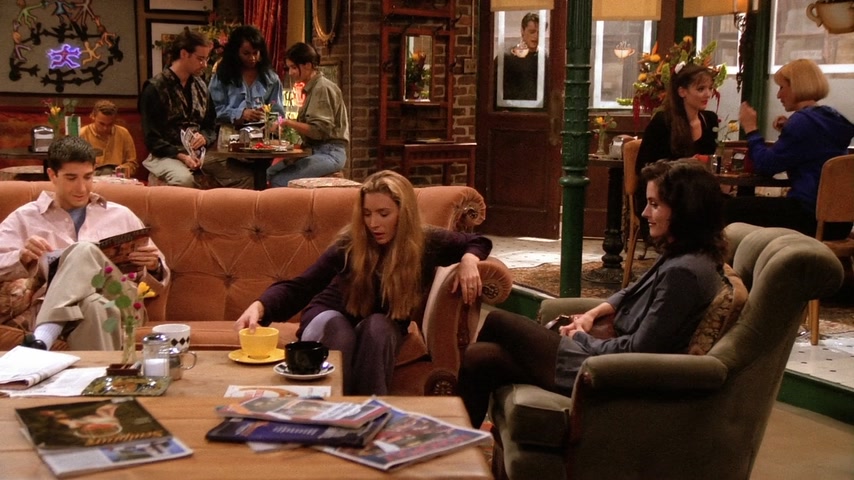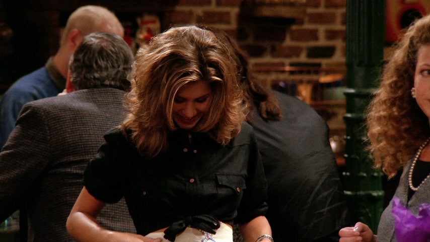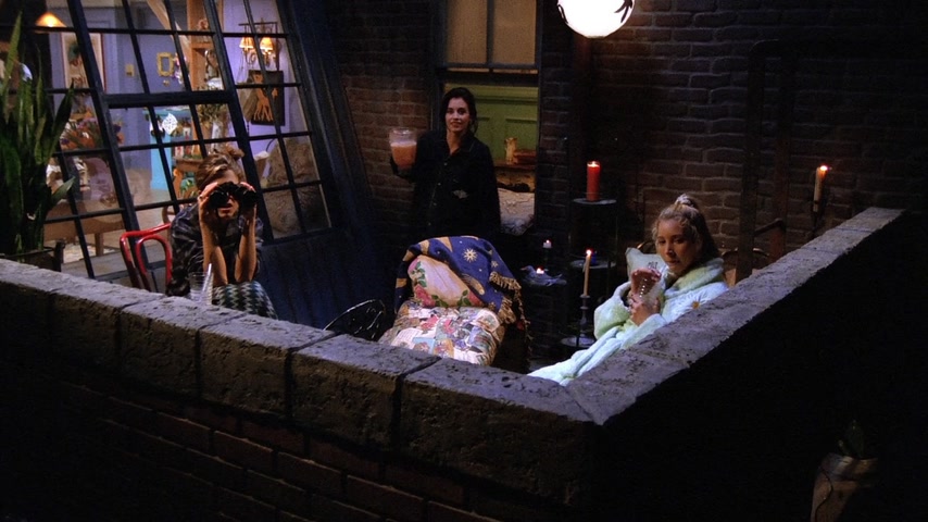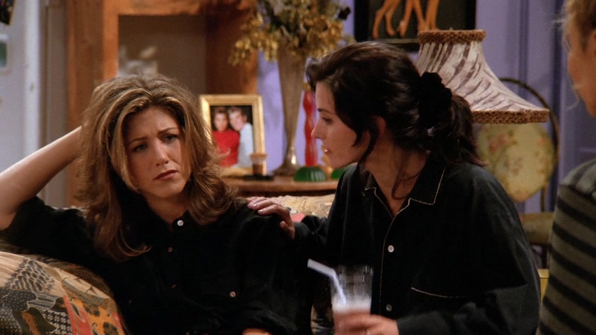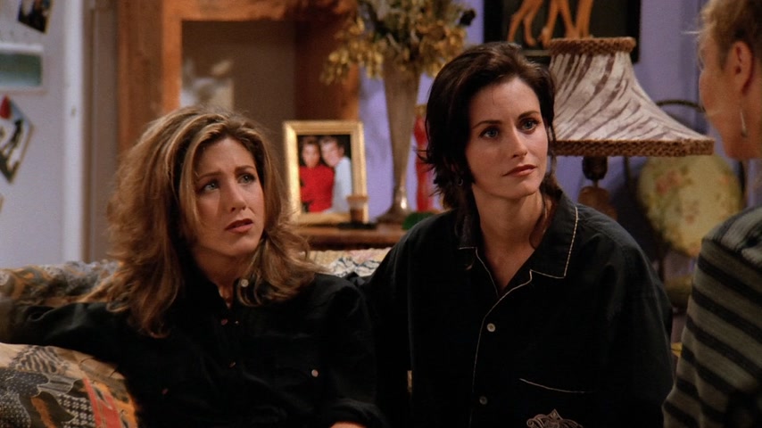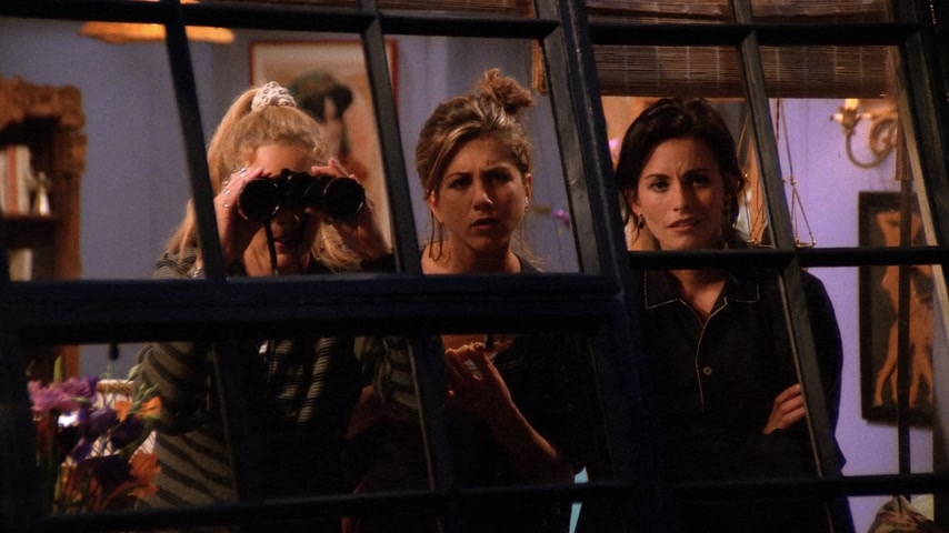 Фиби страдает от недосыпа из-за нового кавалера своей бабушки. Моника предлагает ей переночевать в своей квартире. Чендлер и Джоуи хотят пригласить Росса на хоккейную игру в качестве «подарка на день рождения» (хотя день рождения Росса был 7 месяцев назад). Росс отказывается от билета — он в депрессии, т.к. это день, когда он и его бывшая жена Кэрол «были вместе в первый раз». В конце концов, Росс соглашается на приглашение. Тем временем Рэйчел получает свою первую зарплату в качестве официантки. Сначала она очень рада, но позже обнаружила, что почти всё ушло на налоги. Фиби сравнивает это со сказкой про Джека и бобовое зернышко: он потерял корову, но приобрёл волшебные бобы, однако ее метафору никто не понимает. Позже в кафе заходят старые подруги Рэйчел из элитного общества: Лесли, Кики и Джоанна, они встречают друг друга громкими возгласами, Фиби сравнивает их с птицами из программы про животных. Каждая чем-то хвастается: одна скоро станет мамой, другая прилично сбросила в весе, а третья получила «выгодную партию». Все это очень расстраивает Рэйчел, так как раньше она тоже все это имела, а теперь не знает что ждет ее в будущем. На хоккейной игре Росс продолжает вспоминать о Кэрол, что раздражает Чендлера и Джоуи. Позже его настроение улучшается, однако во время игры Россу в лицо прилетает шайба и ребята вынуждены отправиться в неотложку. В больнице Россу не спешат помогать, ему приходится «бороться» с медсестрой регистратуры (та неспешно разговаривает по телефону с руководством компании по производству шоколадных батончиков). Чендлер берет медсестру на себя. Джоуи и Росс продолжают рассуждать о женщинах и жизни. Тут Росс обнаруживает, что «его» шайба пропала. Оказывает какой-то мальчик нашел её и взял себе, а отдавать не хочет. После короткой борьбы за шайбу она вылетает из рук мальчика и попадает прямо в лицо медсестре. Россу накладывают шину на нос и Чендлер замечает, что тот хорошо бы смотрелся в «Молчании ягнят». Моника и Фиби решили устроить пижамную вечеринку с ромовым пуншем и пиццей. Рэйчел возвращается без настроения, тут же ей звонят из банка, интересуясь почему ее доходы/расходы резко сократились. Моника и Фиби пытаются поднять ей настроение, однако все впадают в расстройство, осознавая что и их жизнь не очень-то счастливая. Приходит доставщик пиццы и приносит не ту пиццу, которую они заказывали; девушки расстраиваются еще больше, однако обнаруживают, что это пицца предназначалась для «Дж. Стефанопулоса» мужчины из дома напротив. Девушки платят за его пиццу и бегут на балкон с биноклем, чтобы шпионить за Джорджем. Пока они шпионят за ним, они напиваются и обсуждают парней (в том числе Росса, Чендлера и Джоуи), а позже начинают рассказывать друг другу секреты, связанные с их совместным прошлым: так например, Фиби целовалась с парнем Моники через час после того, как тот её бросил, а Моника кормила Фиби гусиным паштетом, зная что та вегетарианка. Рэйчел рассказывает про парня Моники из школы и всё перерастает в скандал, однако все замолкают, когда Джордж появляется в окне напротив в одном полотенце. Вечером все ребята играют в твистер. Рэйчел снова звонят из банка и спрашивают почему она не пользуется своей карточкой, она с любовью смотрит на своих друзей и говорит, что у неё все в порядке, так как у неё есть «бобы»