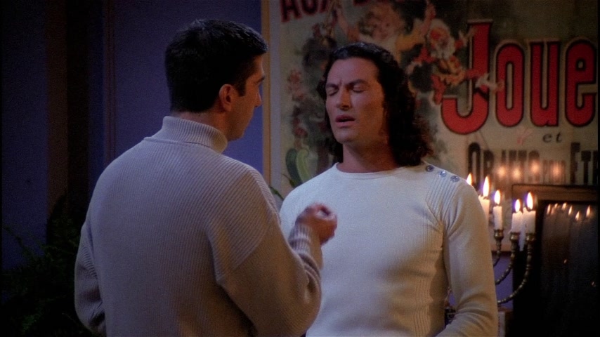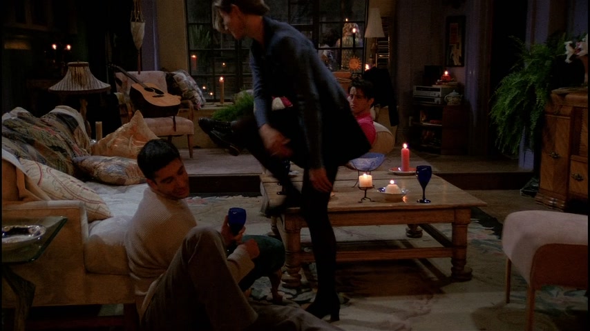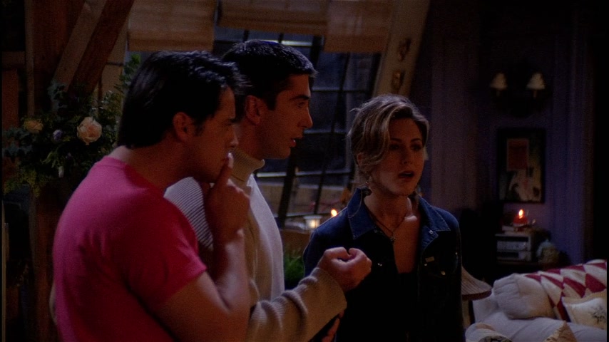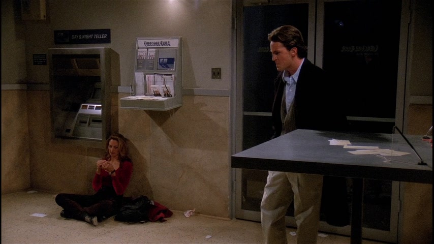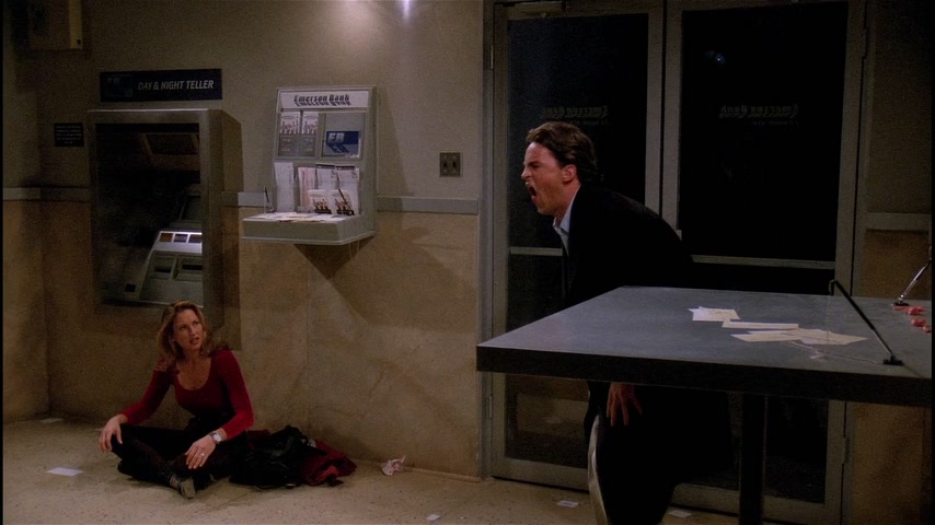 Центральная кофейня. Рэйчел открывает выступление Фиби. Фиби начинает играть, но в этот момент гаснет свет во всем городе, выступление завершается. В это же время Чендлер оказывается заблокирован в вестибюле банка с молодой девушкой. Росс, Фиби, Моника и Рэйчел в их квартире, заполненной свечами. По телефону Моника узнает от матери, что электричества нет на всем Манхэттене, части Бруклина и Квинса. Джоуи приносит менору со свечами из своей квартиры. Чендлер понимает, что девушка в вестибюле это модель Victoria’s Secrets — Джилл Гудакр. Она предлагает ему позвонить родным по сотовому телефону. Он звонит Монике и пытается завуалированно объяснить, что застрял в вестибюле с моделью. Однако Моника не понимает его, передаёт трубку Джоуи и тот сразу понимает о чем идёт речь. Тем же завуалированным языком он дает Чендлеру совет на счёт того, как себя вести. Ребята в квартире решают вспомнить свои самые страшные случаи, связанные с сексом: у Моники это на бильярдном столе, у Джоуи в женском туалете в библиотеке, у Фиби — город Милуоки, у Росса в Диснейленде, а у Рэйчел — под кроватью. Позже Рэйчел и Росс обсуждают страстные отношения, Росс надеется пофлиртовать с Рэйчел, но Джоуи его тормозит, объясняя, что Росс теперь находится в «зоне дружбы» («freands zone» — фрэнд-зона), более того, он «мэр этой зоны». Джоуи убеждает Росса действовать и тот отправляется к Рэйчел на балкон. Джоуи сторожит балкон и врёт Монике, что Росс готовит ей вечеринку-сюрприз, Фиби услышав об этом расстраивается, что всё узнаёт последней и вспоминает про укус Чендлера павлином и влюбленностью Моники в Джоуи, когда тот вселялся, однако Джоуи тоже об этом не знал. В момент, когда Росс пытается признаться в своих чувствах к Рэйчел на него прыгает кот, разговор заканчивается, так и не начавшись. Рэйчел и Фиби решают отыскать владельца кота: они ходят по коридорам, наведываются к мистеру Хэклзу и остальным. В итоге, кошка сама находит хозяина — красивого итальянца, которого находит и Рэйчел. Ребята в квартире играют в монополию, Рэйчел приводит Пауло и знакомит со всеми, Росс в отчаянии. Он пытается отвадить Пауло, но когда включается свет, ребята обнаруживают целующихся Рэйчел и Пауло. В вестибюле Джилл предлагает Чендлеру жевательную резинку, сначала он отказывается, потом соглашается. Позже Джилл спасает поперхнувшегося жвачкой Чендлера с помощью маневра Хеймлиша и они весело убивают время, играя с ручкой.