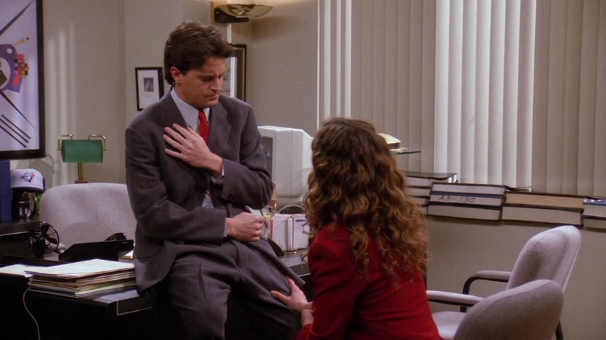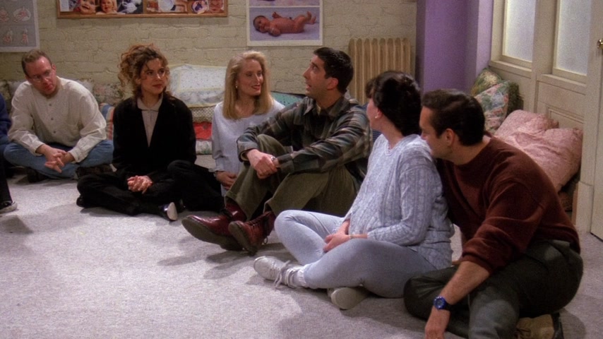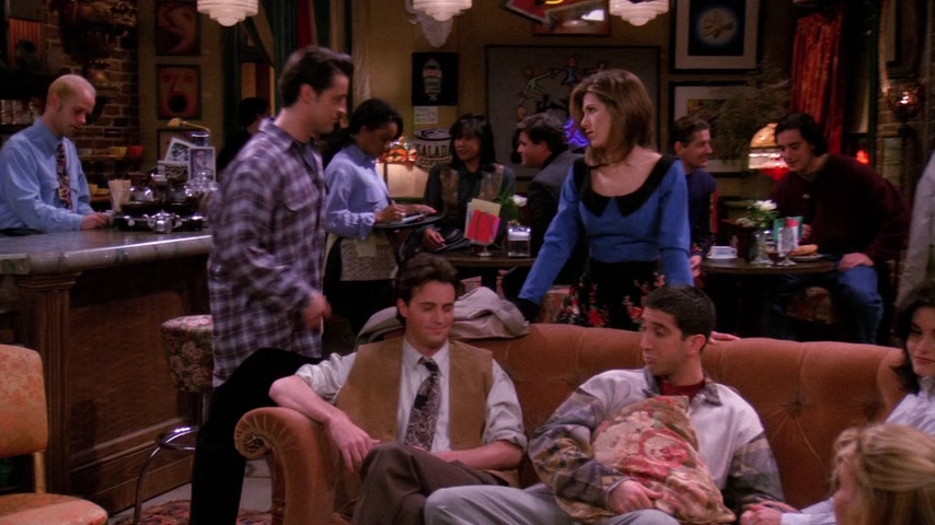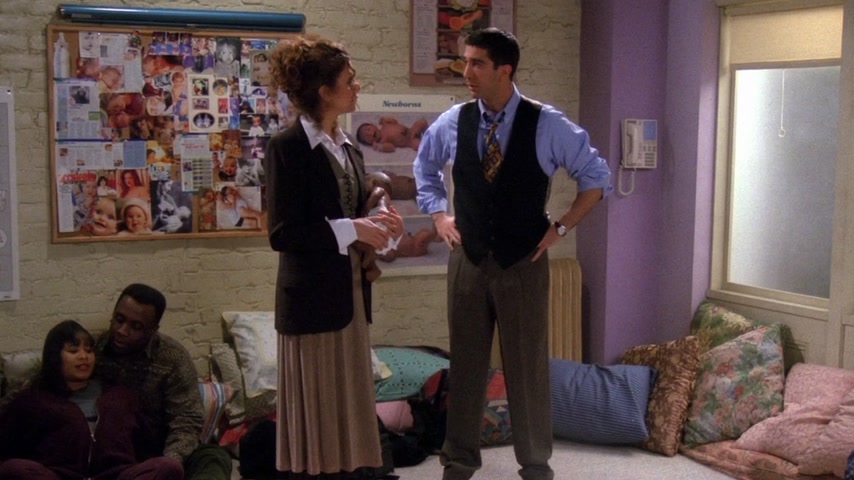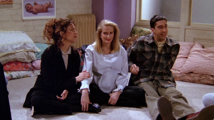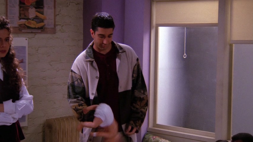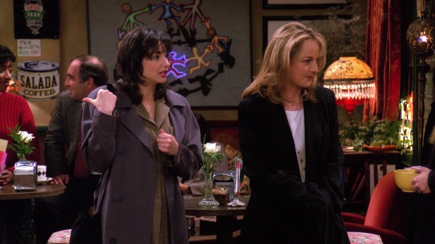 Чендлер и Джоуи сидят в ресторане «У Риффа» и ожидают заказа, они замечают официантку похожую на Фиби. Парни пытаются с ней поговорить и сделать заказ, но девушка отвечает пространно и будто не работает официанткой. Позже ребята понимают, что это сестра-близнец Фиби — Урсула. В центральной кофейне Росс жалуется друзьям на свою обезьяну Марселя, ему кажется, что обезьянка специально вредничает. Приходят Чендлер и Джоуи и рассказывают об Урсуле, выясняется, что Фиби не ладит со своей сестрой с детства и сейчас они практически не общаются. Россу нужно на собрание будущих родителей по технике Ламаза и он нервничает, что кроме него и Кэрол, там будет и Сьюзен. На работе Чендлеру приходится отчитывать симпатичную сотрудницу Нину, чуть позже начальник Чендлера сообщает о сокращении штата и, что Чендлеру придется уволить Нину. В квартире Моники Марсель умудряется переключить язык телевизора на испанский. Росс переживает, что Марсель его не слушается. Моника ругает Рэйчел за то, что та до сих пор не сняла рождественские гирлянды с балкона. Приходит Джоуи, похоже, что он влюбляется в Урсулу. Ребята советуют ему поговорить об этом с Фиби; та в замешательстве, но не запрещает Джоуи встречаться с сестрой. Росс снова приходит на класс будущих родителей, но Кэрол не смогла прийти. Ему приходится общаться со Сьюзен. Они спорят, кто должен изображать «мамочку», роль выпадает Россу. Чендлер никак не может уволить Нину, вместо этого он завязывает с ней отношения, а начальнику говорит, что Нина сумасшедшая и увольнение выбьет ее из колеи. В Центральную кофейню случайно заходят две женщины (Джейми и Френ), они замечают Фиби и принимают ее за Урсулу. Они пытаются сделать заказ у Фиби, но т.к. та не работает здесь и не знает их, вскоре уходит (разговор похож на разговор Урсулы с Джоуи и Чендлером). В квартире Моники и Рэйчел девушки ругают Чендлера за то, что он до сих пор не уволил Нину. Приходит сосед снизу — Мистер Хекклс, он жалуется на шум сверху и говорит, что это мешает его кошкам, которых на самом деле нет. У сестёр Буффэ скоро день рождения, Джоуи решил подобрать кофту для Урсулы. Фиби сердится и они ссорятся с Джоуи. На курсах родителей Кэрол осознает, что ей скоро рожать, она волнуется, но Сьюзен её успокаивает. Однако теперь Росс начинает волноваться, что ему скоро быть отцом, а он даже Марселя воспитать не может. Нина приходит к Чендлеру и спрашивает, почему все смотрят на неё как на сумасшедшую. Чендлер снова начинает нервничать и говорит, что Нину ждёт повышение, но секретарша спрашивает про психологический портрет для дела сотрудницы и Чендлеру приходится все рассказать. В конце концов, Нина ударяет его степлером. Фиби нервничает из-за Джоуи и Урсулы, она рассказывает друзьям как Урсула всю жизнь все ей портила: в детстве — игрушечный термос, а в юности она бросила хорошего друга Фиби и тот не мог больше общаться ни «с кем, кто хоть как-то похож на Урсулу». Теперь она боится, что то же самое произойдет с Джоуи. Рэйчел решает все-таки снять гирлянды с балкона, но поскальзывается и падает с балкона, она застревает в гирлянде и висит за окном мистера Хэкклса, взывая о помощи.